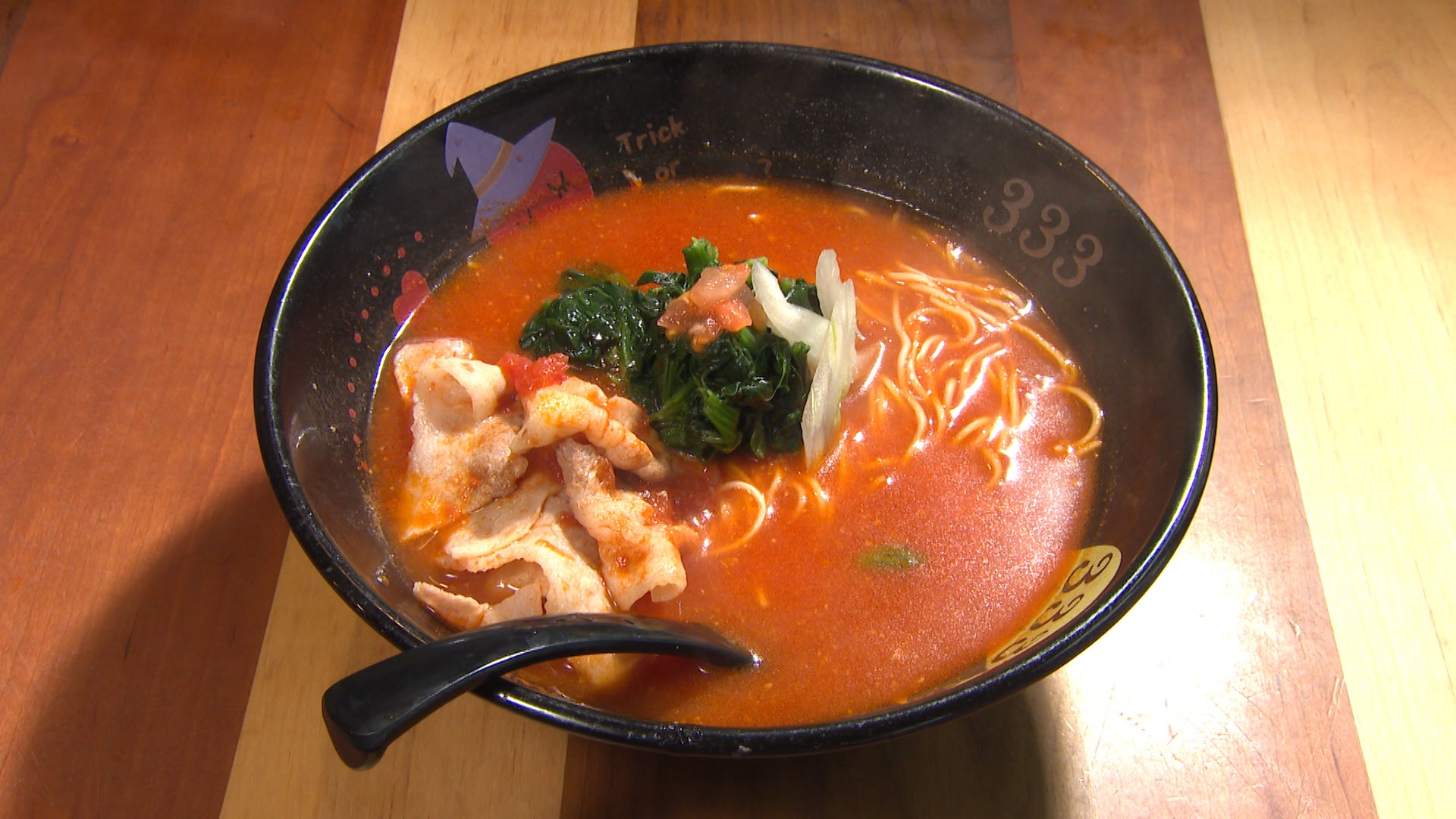 今回お邪魔したのはトマトラーメンや辛麺が楽しめる「三味」学生さんや女性にも大人気のお店です。