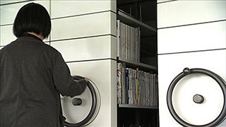 金剛は1974年世界初の丸ハンドル式の移動棚を発売。