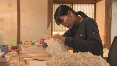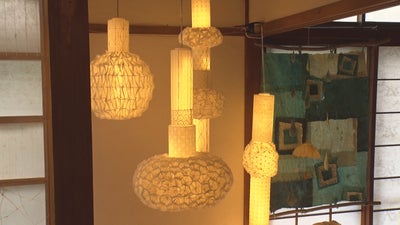 手作りした和紙を、小さくちぎってひとつひとつつなぎ合わせて作られた照明。制作したのは、鹿児島市で和紙デザイナーとして活躍する原口敬子さん(36)。
