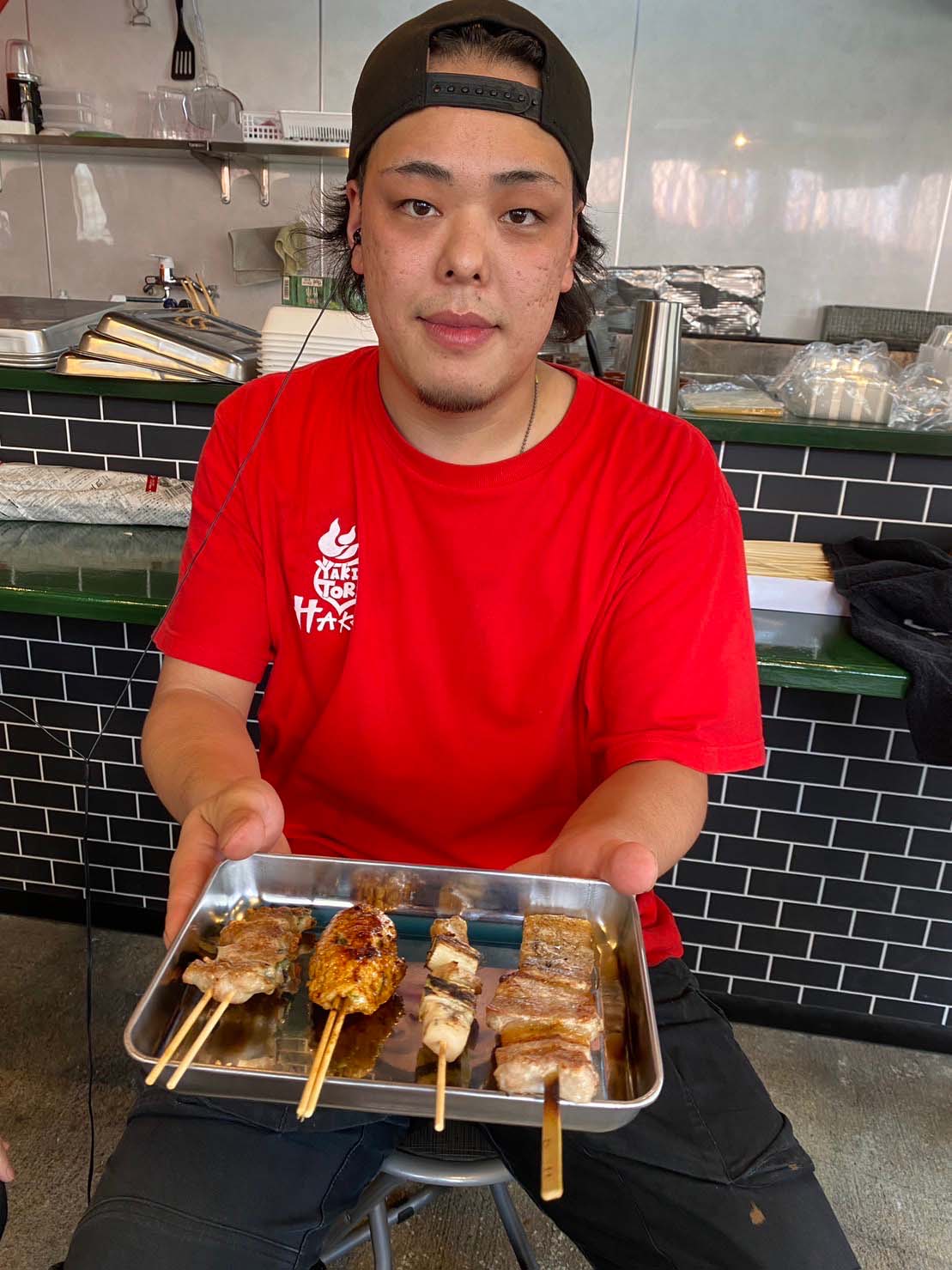 まだ営業時間外でしたが特別に焼き鳥と肉巻きおにぎりをいただけることに、もちろんタダで貰うわけには行きません!芸人ですから!(一応)