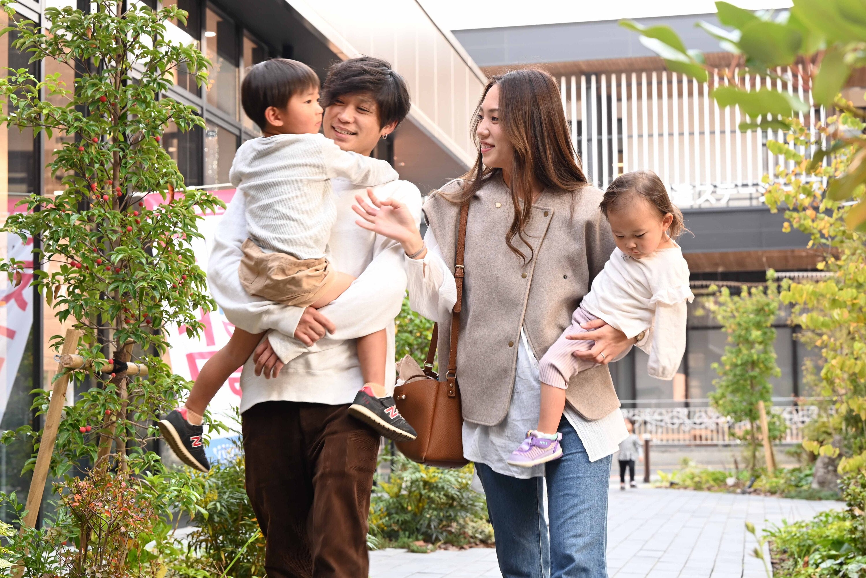 都城市中心部にある「まちなか広場」は子育て世代でにぎわう