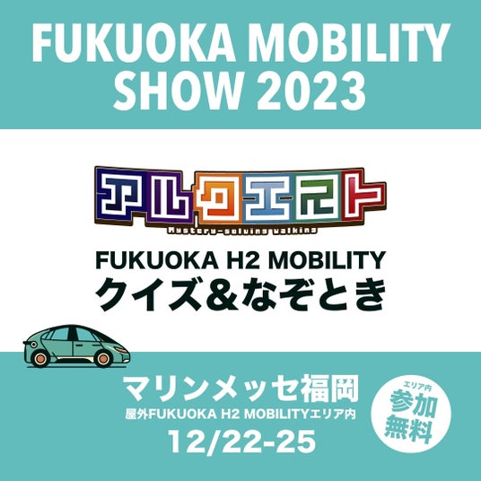 福岡県の公用車として活躍中のFCV「MIRAI」とキャンプのコラボレーション展示や、大人気謎解きコンテンツ「アルクエスト」の福岡モビリティショースペシャル問題も開催。