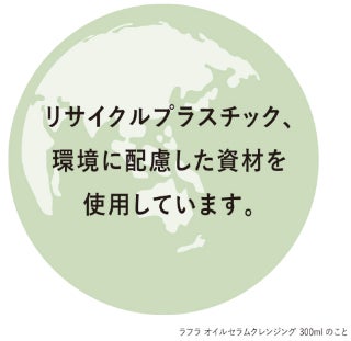 サスティナブルなビッグボトル 『オイルセラムクレンジング』ビッグボトル300mLは、リサイクルプラスチック、環境に配慮した資材を使用。クレンジングを通じてサスティナブルな未来への一歩を踏み出します。
