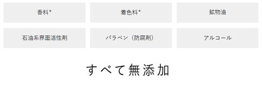 さらに肌のこと考えた6つの無添加設計。《香料*、着色料*、鉱物油、石油系界面活性剤、パラベン(防腐剤)、アルコール》フリーを実現しました。