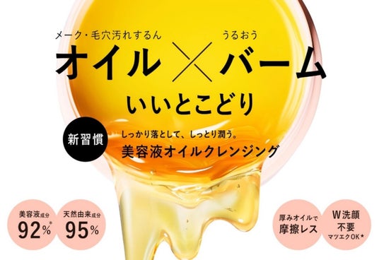 シリーズ累計120万個以上を売り上げた温感美容液クレンジングバーム「バームオレンジ」の、うるおいを守りながら肌に負担をかけず、メークや毛穴汚れをしっかり落とす機能性はそのままに、クレンジングオイルの使いやすさや手軽さを両立させた、 まさに“いいとこどり”の美容液オイルクレンジングです。