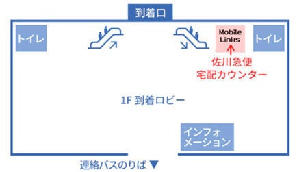 【福岡空港】国際線1階 佐川急便配送カウンター佐川急便配送カウンターにてレンタル品の受取および返却を行なっております。