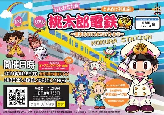 「リアル桃太郎電鉄~週末のKITAKYUバトル!!~(北九州モノレール編)」が、1月28日~2月11日の土曜・日曜限定で開かれます。28日のみオープニングイベント開催!