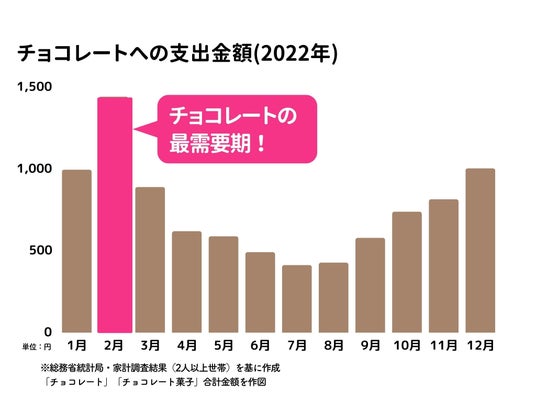 バレンタインデーの影響もありますが、チョコは気温が高くなると溶けやすくなってしまいますので、チョコと寒い2月の気温はとても相性が良いと言われていて、冬はチョコ商品が市場で多くなる傾向にあります。