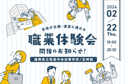 高校生の就職を支援している「ジンジブ」(本社・大阪府大阪市)は 、2024年2月22日(木)に、福岡県立筑紫中央高等学校(福岡県大野城市・校長:林 節子)定時制課程の1~3年生の全生徒と4年生の希望者を対象に、生徒が企画・運営を行う職業体験会を開催いたします。地元企業を中心に製造・建設業界などの企業4社が参加します。