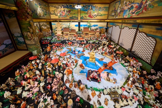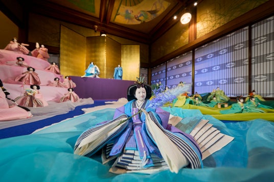 800体の座敷雛の中で女子会をする三人官女や、指先に載るほどの貝殻に描かれたお雛さま、春の芽吹きをイメージしたてまりの中の隠れハートなど、ちいさな発見が沢山。階段を上りながら7つの会場を順にめぐり展示スケールに圧倒された後は、階段を下りながら、ひと部屋ひと部屋を再度じっくり鑑賞するのがおすすめです。