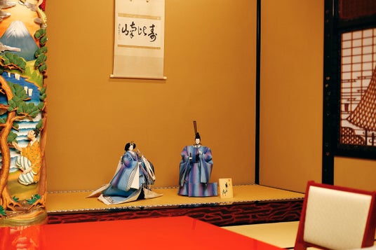 企画展「静水の間」で独自の世界観を表現する東之湖氏の作品がレストランにも登場。近江上布をまとい、豊かな自然の恵みを表現した雛人形が、ハレの日をより鮮やかに演出いたします。