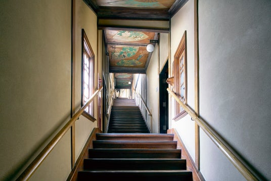 7つの展示会場をつなぐ階段廊下