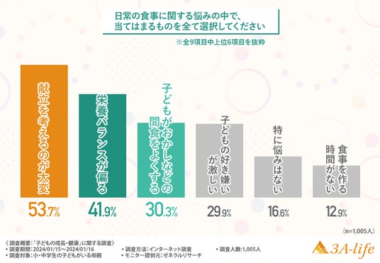 調査結果から、日常の食事で栄養バランスを整えることの難しさや、子どもの成長と健康に対する母親の関心と懸念が浮き彫りになりました。