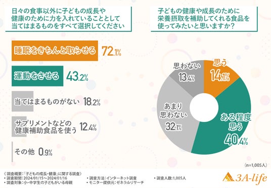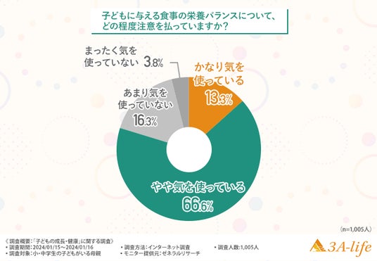 スリーエー・ライフ株式会社(所在地:東京都世田谷区、運営責任者:二宮 大次郎)は、小・中学生の子どもがいる母親を対象に「子どもの成長・健康」に関する調査を実施しました。