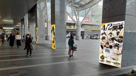 開幕戦に向けた盛り上げとして、博多駅に「VIVA」の高さ1.5メートルの巨大オブジェが登場。そのほか博多・天神エリアを中心とした福岡の街中を開幕キービジュアルで装飾します。