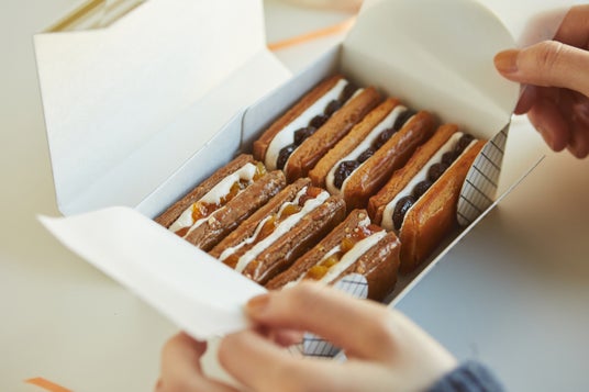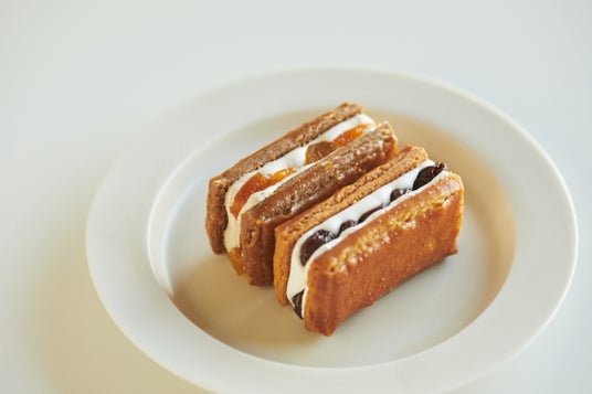 箱の中には、定番のレーズンサンドと、季節で変わる果実のサンドの2種類。今まで販売された「季節で変わる果実のサンド」のレシピは15種類以上あり、DEAN & DELUCAではその中から月替わりでフレーバーを展開します。