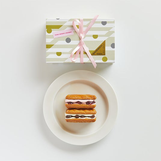 箱の中には、定番のレーズンサンドと、季節で変わる果実のサンドが3つずつ。スパイスを効かせたサブレに果実味溢れる香り高いクリームを挟んだ、ジューシーで特別なサンド菓子です。風味、食感、余韻。サブレとクリームのベストフレンドな調和をお楽しみいただけます。レーズン好きもそうでない人も、イエスもノーも、みんなで仲良くたのしめるお菓子です。