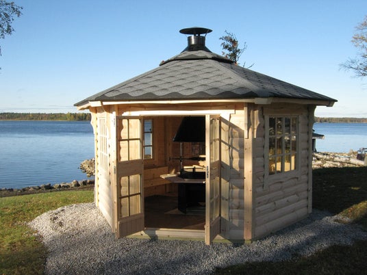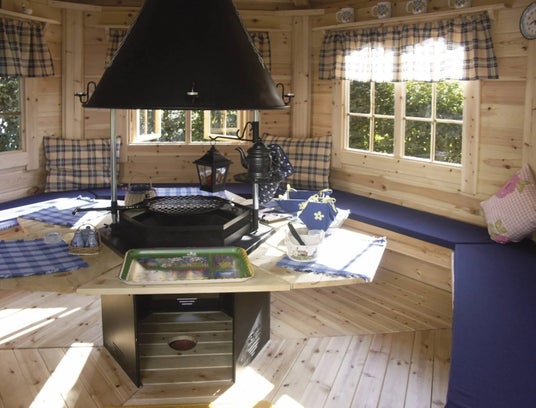 北欧では寒い時期が長いため、外でのバーベキューをする事が難しく、冬でも楽しめるようにミニログハウスでBBQを行う文化があります。