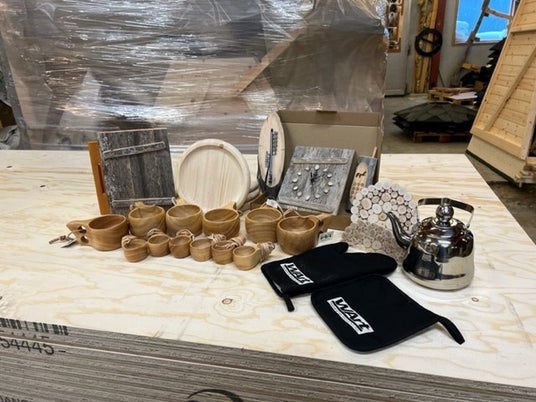 木のマグカップ「ククサ」やミトンなどをセットにしたラップランドパッケージ。