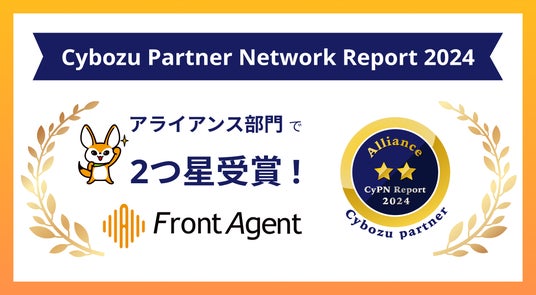 AI商談アシストプラットフォーム「Front Agent(R)」を開発するUmee Technologies株式会社(本社:東京都調布市、代表取締役:新納 弘崇、以下ユミー)は、2024年4月にサイボウズ株式会社(本社:東京都中央区、代表取締役社長:青野 慶久、以下 サイボウズ)のパートナー評価制度「Cybozu Partner Network Report 2024」の2024年度アライアンス部門において、2023年5月サービスリリースから同年12月までわずか8カ月の期間の成果で2つ星の評価を獲得したことをお知らせします。