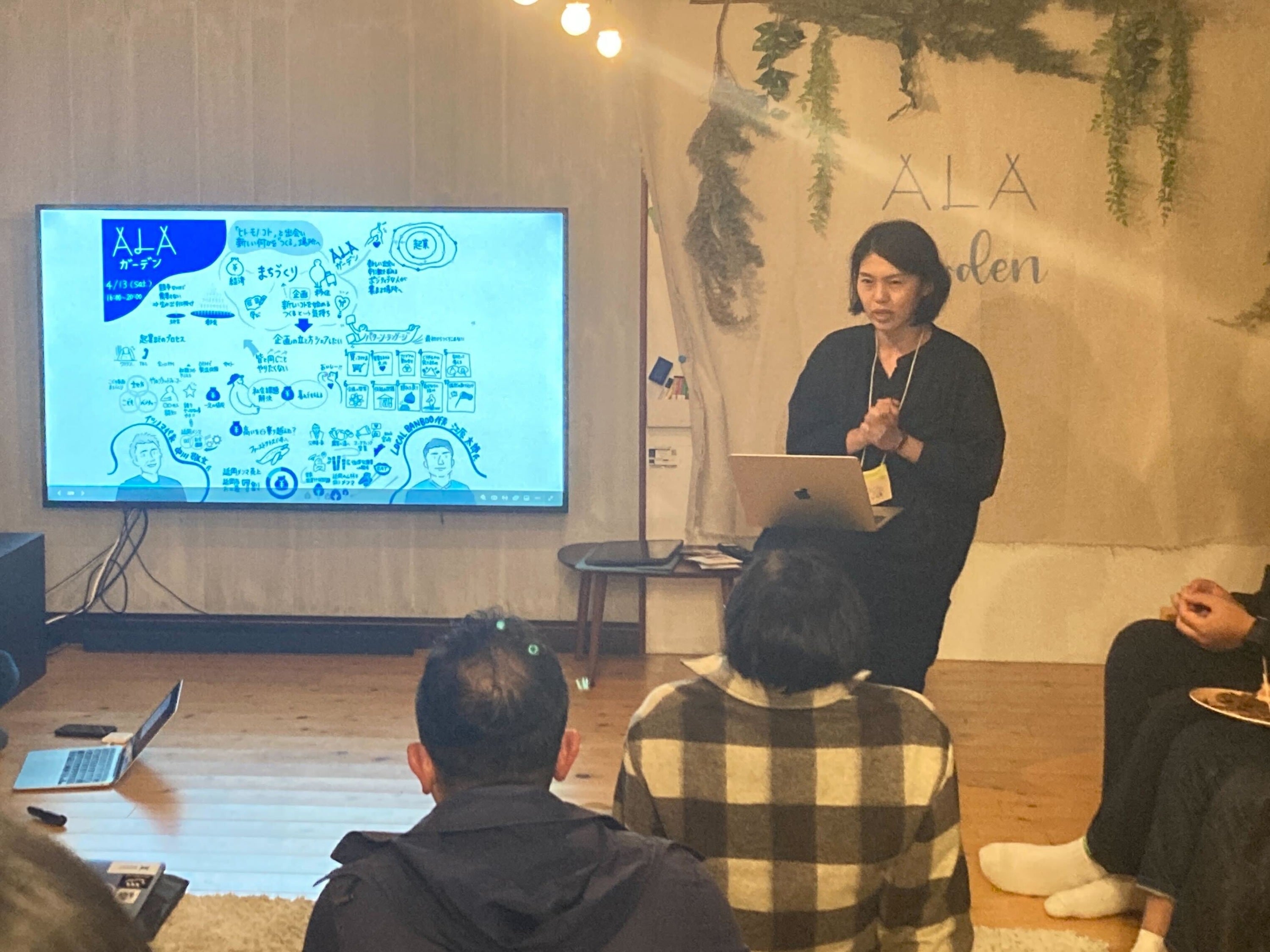”ALAガーデン”のメインプログラム「まちづくりカレッジ」はトークゲストを交えて希望者が自分の考えてる事業やまちづくりについてプレゼン、参加者同士でフィードバックやアドバイスをします。