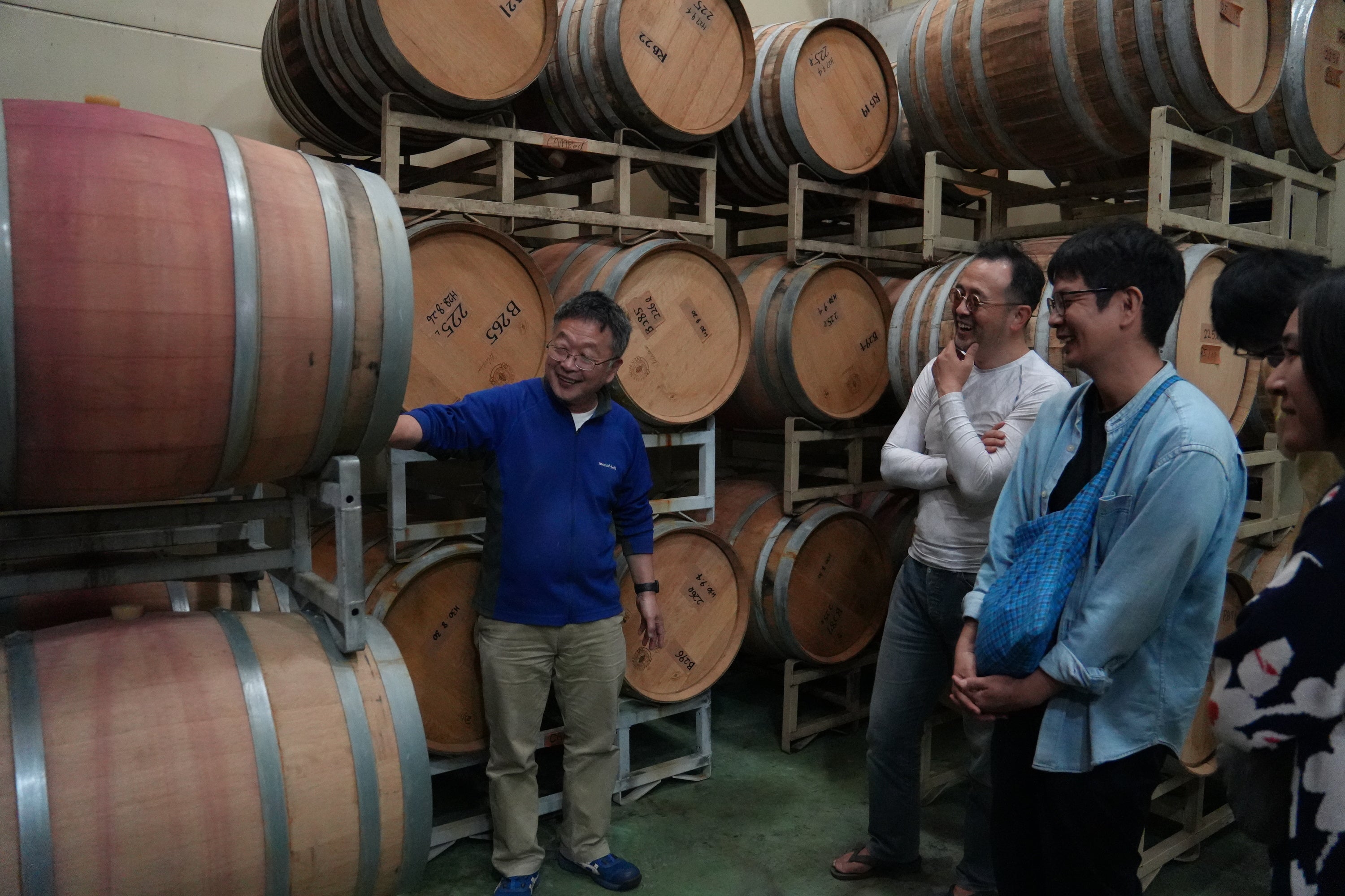 都農ワイナリーツアーでは、都農ワインの創業醸造家で前社長の小畑暁さんから直々に、ブドウ畑から醸造工場までご案内いただいています。