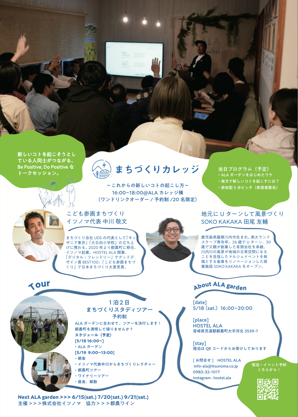 都農町が今一番必要としている20代・30代の「新しいコトを起こしたい人」へ、”ALAガーデン”を発信
