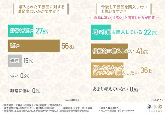 8割以上が工芸品に高い満足度を感じていることが明らかに。追加購入に対する意欲は?