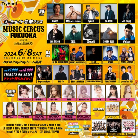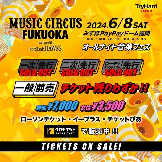 株式会社TryHard Japan(所在地:大阪市中央区)と福岡ソフトバンクホークス株式会社(所在地:福岡市中央区)は、音楽フェスティバル「MUSIC CIRCUS FUKUOKA partner with SoftBank HAWKS」の第五弾出演アーティストを発表いたします。