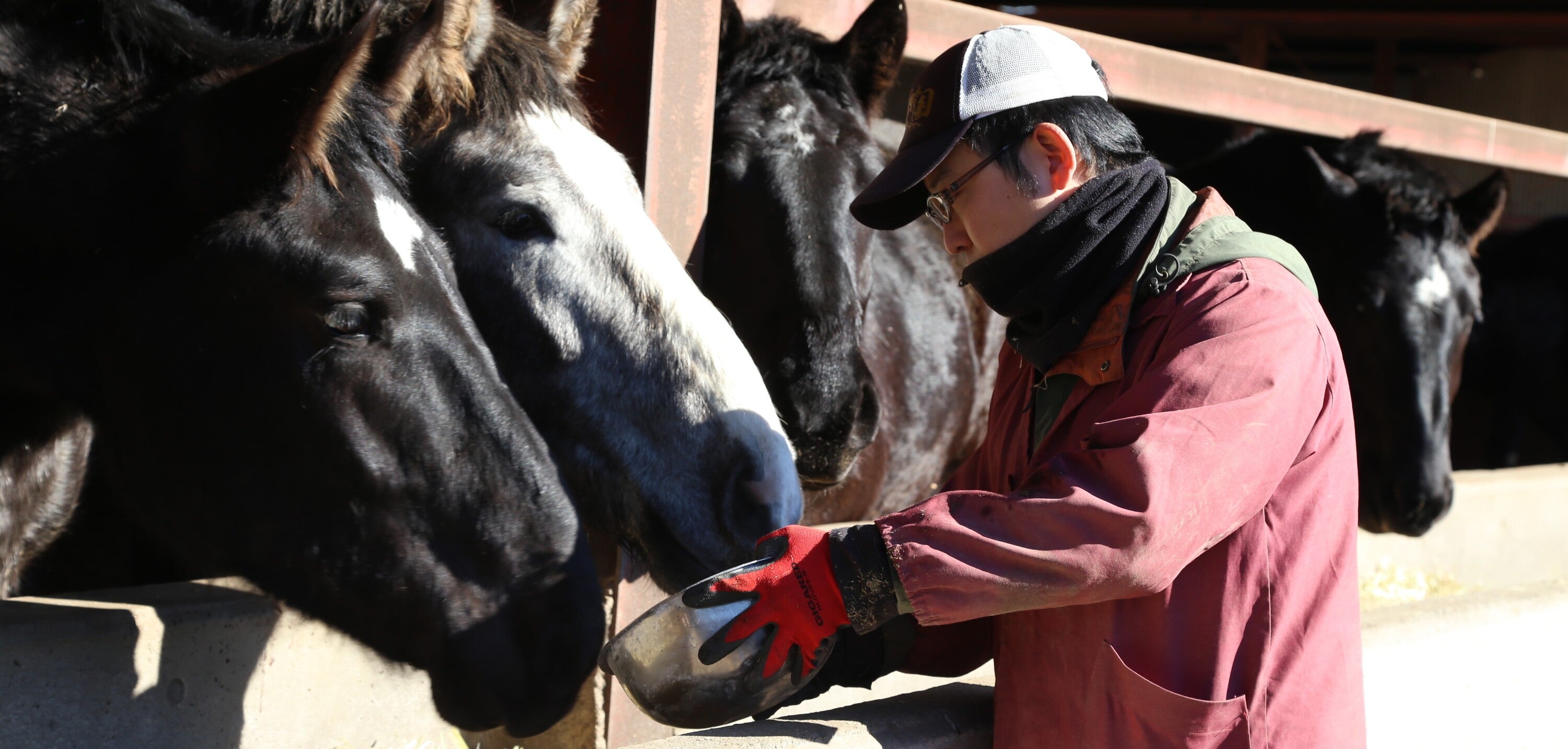 そして体調や発育に合わせて長年改良をして配合をした独自ブレンドの飼料を与え、またその量や配合も牛・馬に合ったものを与えています。