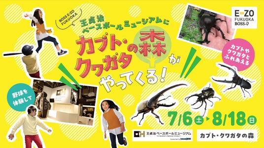 福岡ソフトバンクホークス株式会社(本社:福岡県福岡市 代表取締役社長CEO:後藤芳光)は、みずほPayPayドーム隣の複合エンターテインメントビル「BOSS E・ZO FUKUOKA(ボスイーゾフクオカ」4階の「王貞治 ベースボールミュージアム Supported by DREAM ORDER」にて、2024年7月6日(土)~8月18日(日)の期間限定で「カブト・クワガタの森」を開催しますので、お知らせします。