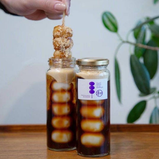 特性餡を串団子とともに瓶の中に!タレの中から取り出す斬新スタイル。