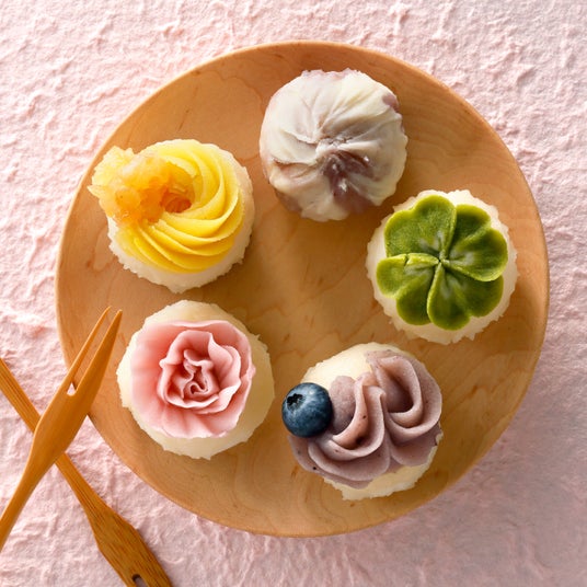 バラやカーネーションなどの花をおはぎに飾った、宝石のように美しいおはぎ。