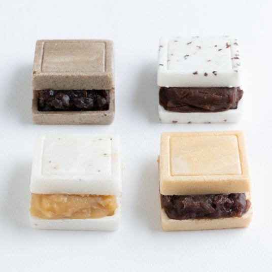 個性豊かな手作りフレーバーもなか。北海道産粒餡×焦がし種など4種。
