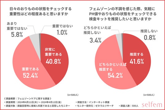 さらに、9割以上の産婦人科医が、おりものの状態をセルフチェックするのが重要だと回答しています。自宅で気軽にPH値やおりものの状態をチェックできる検査キットの使用を推奨する方は多いようです。