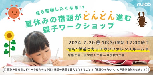 株式会社ヌーラボ(本社:福岡県福岡市、代表取締役:橋本正徳、以下 ヌーラボ)が提供しているプロジェクト・タスク管理ツール「Backlog」は、プロジェクト管理の考え方を応用した親子向けイベント「自ら勉強したくなる?!夏休みの宿題がどんどん進む 親子ワークショップ(以下、本イベント)」を東京・福岡・大阪・札幌の全国4ヵ所にて開催することを決定しました。