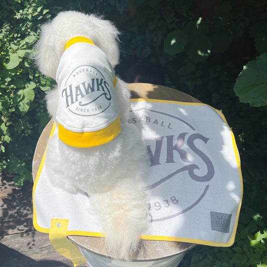 福岡ソフトバンクホークスでは、ホークスのベースボールキャップをモチーフにしたドッグキャップやカフェマットなどのアイテムを販売しています。愛犬もホークスグッズを着用して、一緒に応援しましょう!