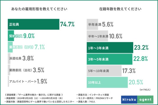ゲーム業界の約7割が「正社員」、在籍年数は「1年~3年未満」が最多