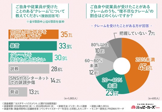 株式会社ハッピーカーズ(本社所在地:神奈川県鎌倉市、代表取締役:新佛 千治)は、店舗経営者(フランチャイズオーナーを含む)を対象に、「カスタマーハラスメント」に関する実態調査を実施しました。