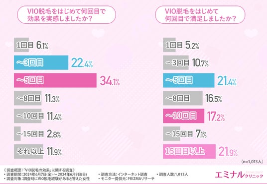 そこで今回、医療脱毛の「エミナルクリニック」は、VIO脱毛をしたことのある女性を対象に、「VIO脱毛の効果」に関する調査を実施しました。
