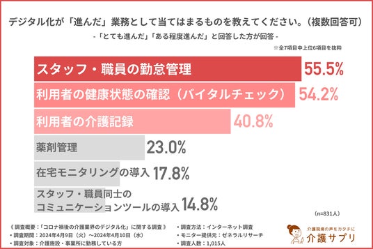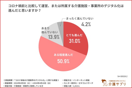 介護施設・事業所で働く方の約8割がコロナ禍前と比較して職場のデジタル化が進んだと回答