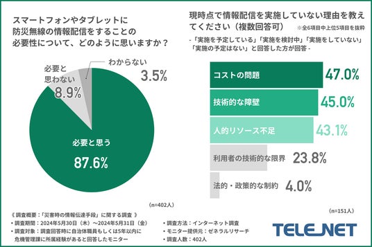 今回、「災害時の情報伝達手段」に関する調査したテレネット株式会社(https://telenet.co.jp/emergeo/)は、地域・防災無線情報配信サービスを提供しています。