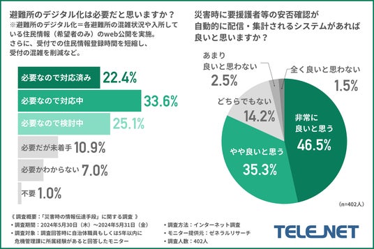 さらに、約9割の方が避難所をデジタル化する必要性を感じており、約8割の方が災害時に要援護者等の安否確認が自動的に配信・集計されるシステムがあれば良いと思うと回答しています。