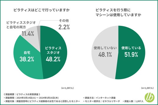また約半数の方がピラティススタジオでピラティスを行っていると回答し、ピラティスを行う際にマシーンを使うマシーンピラティスを行う方が過半数であることが明らかになりました。