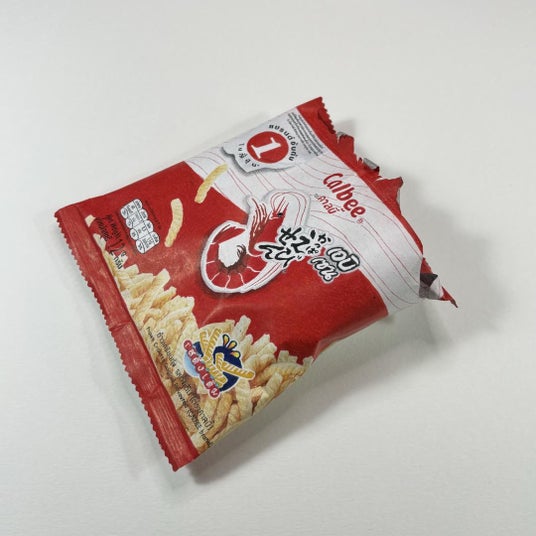 「Leading Asia」より Kentaro Hiroki《Calbee Ebisen Prawn Crackers, Calbee THAILAND》2024年 デーラーラウニー95 GSMにカランダッシュ・ルミナンス 6091、グラファイ 14.5×13.5×4.5cm