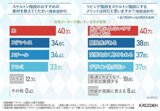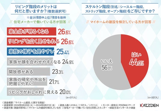 住宅メーカーに勤める4割以上がスケルトン階段のメリットは「家全体が明るくなる」「リビングを広く見せられる」「家族の様子を見やすい」と回答
