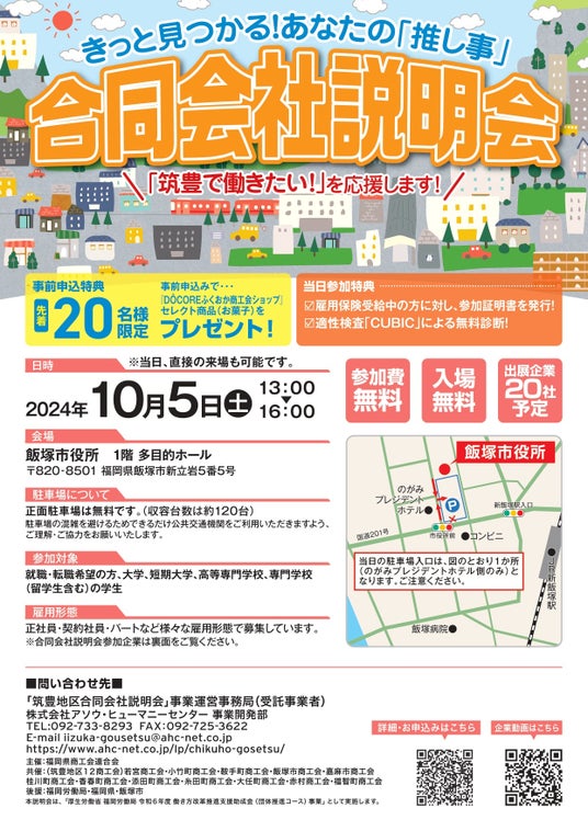 福岡県筑豊地区において、小規模事業者の人材確保及び地域の雇用創出を目的とした、中小・小規模事業者の魅力を訴求する会社説明会を開催する。