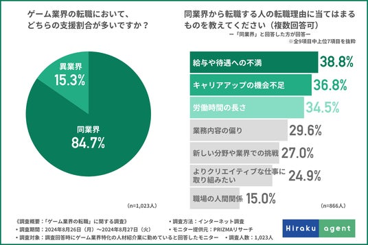 株式会社Hiraku agent(本社所在地:東京都品川区、代表取締役:加藤 啓介)は、ゲーム業界の人材紹介業に勤めている方を対象に、「ゲーム業界の転職」に関する調査を実施しました。
