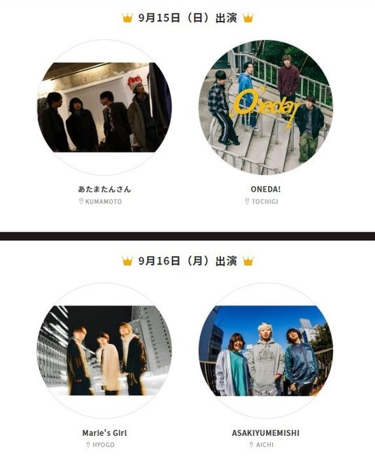 今回のオーディションでは、音源審査を経て、8月に東京、大阪、名古屋、福岡にてライブ審査を実施し、各会場のグランプリを決定しました。オーディションファイナリストは次の通りです。