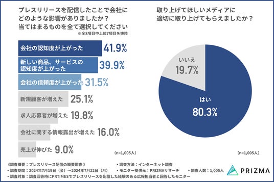 株式会社PRIZMA(本社所在地:東京都渋谷区、代表取締役社長:杉本 昂輝)は、PRTIMESでプレスリリースを配信した経験のある広報担当者を対象に、「プレスリリース配信の概要調査」を実施しました。
